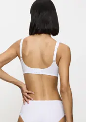 Specjalnie zaprojektowaliśmy ten biustonosz, aby dać Ci dodatkowe wsparcie i dodać pewności siebie w związku z większym biustem. Podszycie zaprojektowaliśmy pod ramiączkami i zapięciem, a zrezygnowaliśmy z wypełnienia miseczek. Minimum objętości, maksimum komfortu.- Gładka, modelująca bawełna
