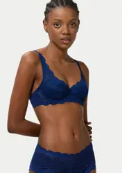 Koronka o wyglądzie vintage zapewnia kultowy styl z futurystycznym dopasowaniem. Zaprojektowaliśmy ten biustonosz bez uszczerbku dla wygody.- Miękkie miseczki z wypełnieniem ozdobione elastyczną koronką