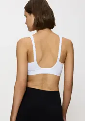 Dzięki zastosowaniu innowacyjnych materiałów oraz technologii „spacer cup”, ten sportowy biustonosz sprawia wrażenie „drugiej skóry”. Zaprojektowaliśmy go z myślą o optymalnym wsparciu, dzięki czemu będziesz miała całkowitą pewność podczas treningów. Naszym zdaniem zapewnienie wsparcia powinno być obowiązkowe. Bez względu na to, czy biegniesz w maratonie czy na autobus.- Miękkie miseczki bez fiszbin