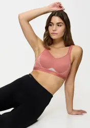 Zaprojektowaliśmy ten sportowy biustonosz, aby zapewnić ekstremalne wsparcie podczas treningu. Lekki i wygodny w dotyku, ma mniej szwów i płaskie zapięcie. Dlatego możesz pocić się bez obaw.- Biustonosz sportowy z lekkim wypełnieniem
