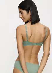 Projektując ten biustonosz, pomyśleliśmy o wszystkim. Formowane termicznie miseczki dla naturalnego kształtu. Ekologiczna koronka, która pozostaje niewidoczna pod ubraniem.- Biustonosz koronkowy z fiszbinami