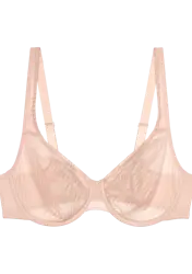 Otulająca ciało koronka żakardowa dopasowuje się do Twoich ruchów. Gładkie, formowane termicznie miseczki idealnie dopasowują się do biustu. Koniec ze zlewającymi się piersiami, idealnie podkreślony dekolt.- Prześwitujący, biustonosz optycznie zmniejszający biust